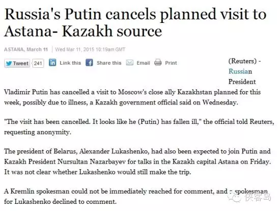 当然,岛叔说的不是几个月前小金玩的那次失踪。这次轮到了俄罗斯总统普京。虽然主角不同,但基本套路都是一样一样的,添油加醋,不外乎政变、绯闻,编得跟好莱坞大片一样,连自己都信了。