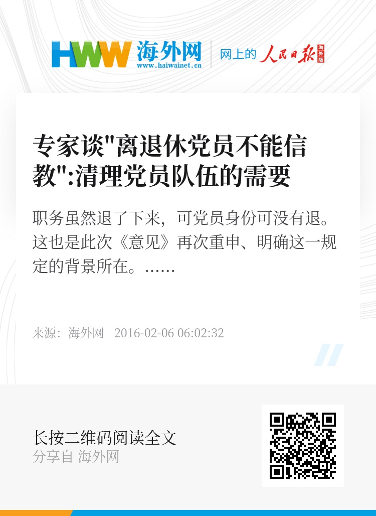 辛鸣说,党员不能信教,本来是常识的事情,却有一些党员以公开、半公开的方式“突破”了,“有些人还认为,我已经从职务上退下来了,为什么不能信教?这些人没有想到,职务虽然退了下来,可党员身份可没有退。”这也是此次《意见》再次重申、明确这一规定的背景所在。