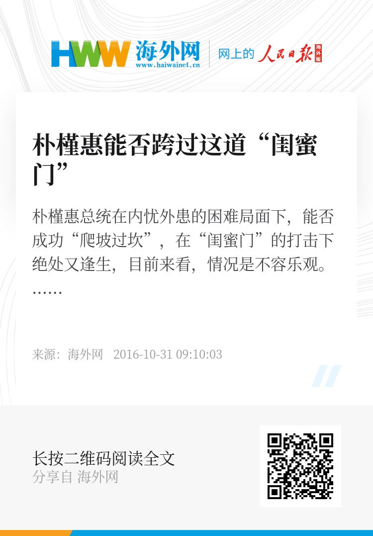 不过,笔者判断,虽形势凶险,但这不意味着朴槿惠已经完全失去了对政权和国家的掌控能力,朴瑾惠下台与否,还要继续观察。这既取决于韩国国内的舆论压力的持续强度、检方调查的进展情况、执政党的反制举措,也取决于反对党的政治智慧和倒阁策略、国民情感的作用及变化。