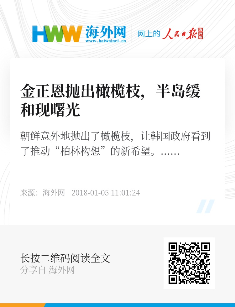 可以看出,金正恩在新年讲话中对韩国抛出了对话和解的橄榄枝,这让韩国始料未及,也令其欣喜若狂。新年伊始,朝鲜半岛不期而遇的这缕久违了的和平曙光,究竟是虚幻般的一闪即逝,还是就此打开了缓和局面,仍有待观察,需抱有审慎的一些期待。