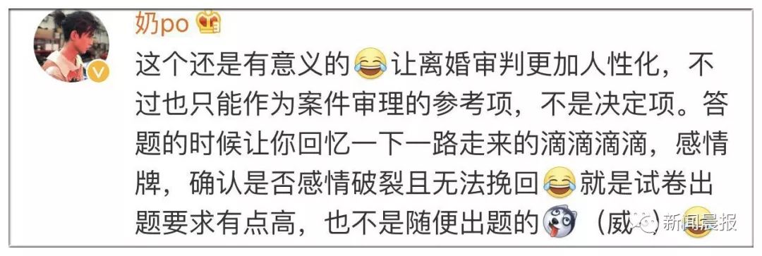 有网友觉得离婚考卷挺好,可以让夫妻双方回忆婚姻的点点滴滴。