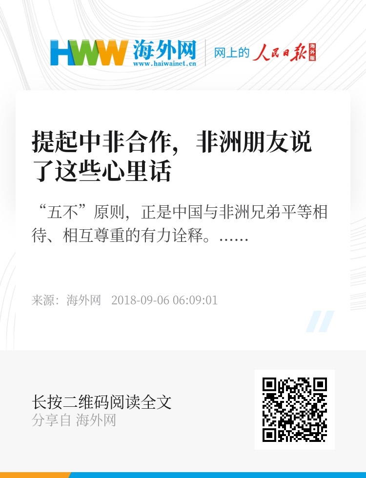 “中国永远是非洲的好朋友、好伙伴、好兄弟。”这是中国对中非关系的定位。“五不”原则,正是中国与非洲兄弟平等相待、相互尊重的有力诠释。