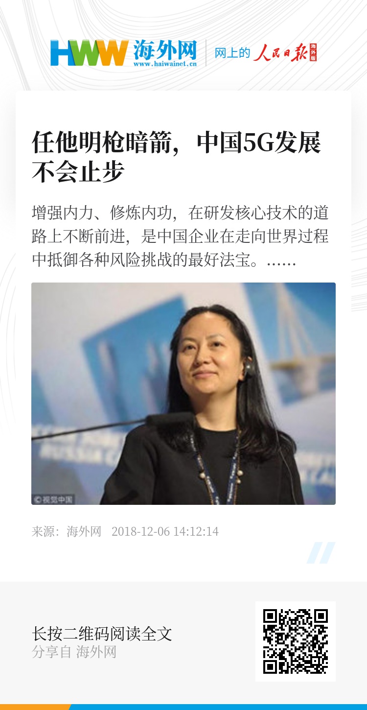 我们不仅期待中国企业在世界市场的风雨中站稳脚跟,而且也应该对此抱有信心。以华为为例,在成长为全球通信设备巨头的路上难免遭遇“明枪暗箭”,但都没有真正打断它崛起成长的进程。未来,全球商品共享化、公开化、开放化乃是大势所趋,市场和消费者会选择最有竞争力的品牌。在此背景下,增强内力、修炼内功,在研发核心技术的道路上不断前进,是中国企业在走向世界过程中抵御各种风险挑战的最好法宝。到那时,任谁也难以阻止“中国智造”造福全球的历史潮流。(海外网评论员 毛莉)