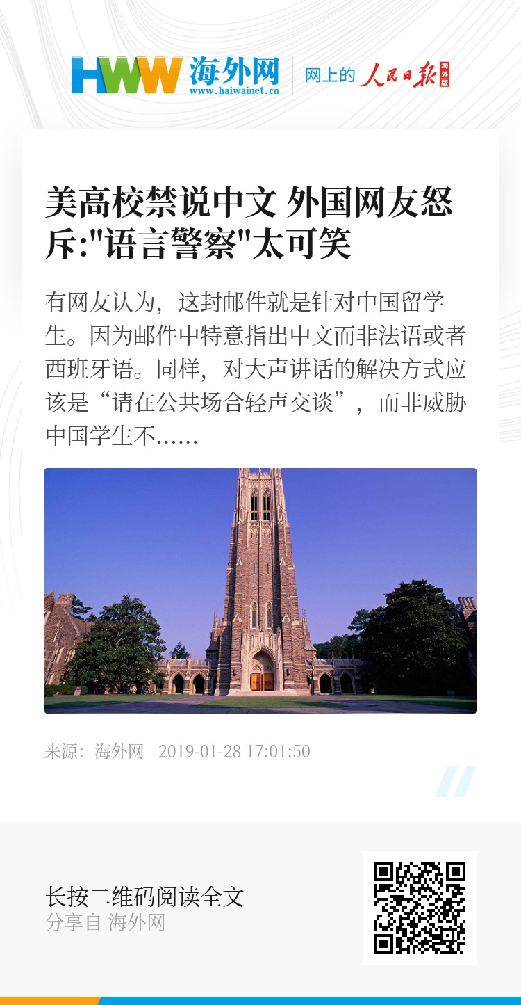 @Frankie Huang 重读这封邮件令我更生气了。信中所言令人脊背发凉。就仅仅因为在业余时间里说了中文,就引发“意外的后果”。可以说,国际学生不受欢迎是没有尽头的。