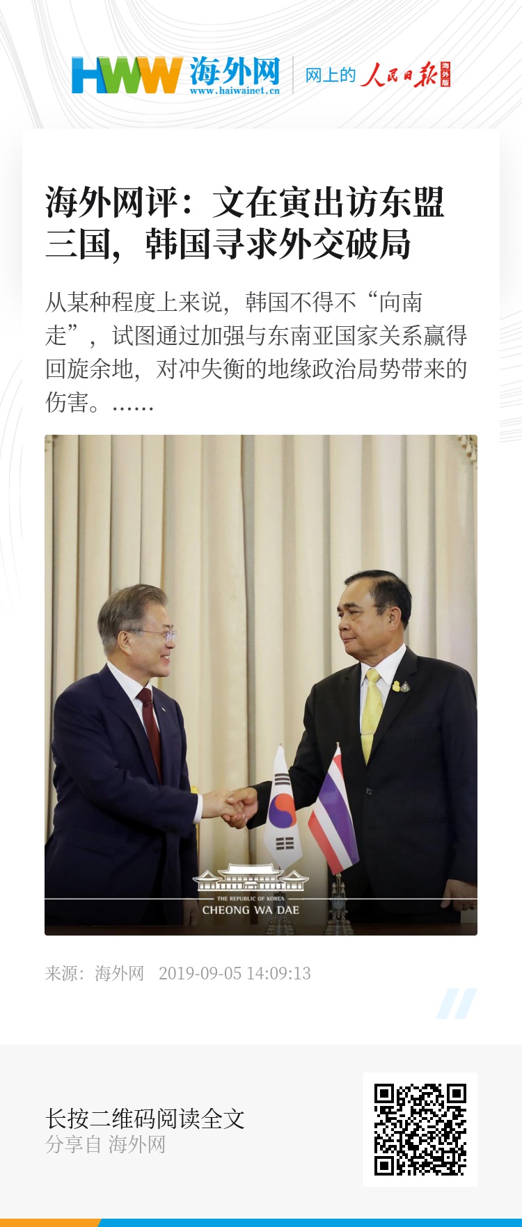 总的来说,文在寅此访更多是“形势所迫”。与泰国、缅甸、老挝签署的经济合作协议可以在短时间内提振韩国经济信心,但是长远来看,由于深深受制于国内和国际双重压力,韩国“新南方政策”能走多远还将面临诸多不确定性因素。(海外网评论员 张六陆)