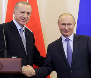 10月22日,俄罗斯总统普京与土耳其总统埃尔多安在俄罗斯索契举行会谈。(图片来源:东方IC)