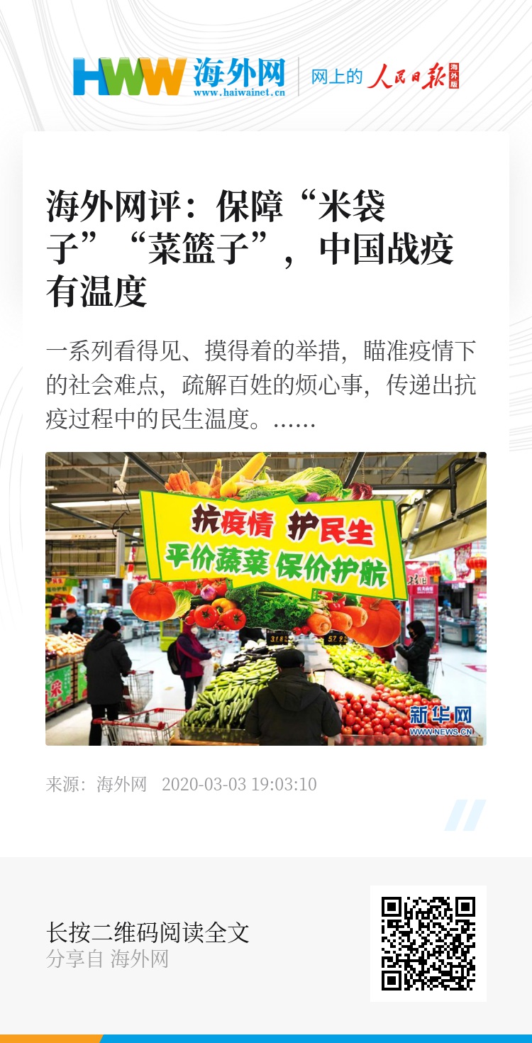 武汉针对低收入的群体推出10元10斤的特价蔬菜包;海口推出蔬果肉蛋免费送上门服务,北京将基本民生项目资金支持上限从50%上限提高到70%……连日来,全国各地推出一系列迅捷有力的民生保障举措,给老百姓送去切切实实的温暖。