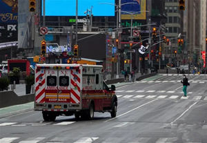 资料图:4月27日,在美国纽约,一辆救护车从时报广场驶过。(图源:新华社)