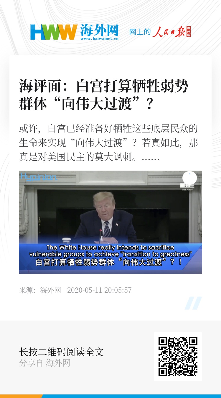 或许,白宫已经准备好牺牲这些底层民众的生命来实现“向伟大过渡”?若真如此,那真是对美国民主的莫大讽刺。