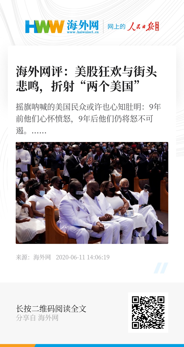 人们现在正在看到两个截然不同的美国:股市里是“收复失地”的狂欢;街头是“我不能呼吸”的悲鸣。