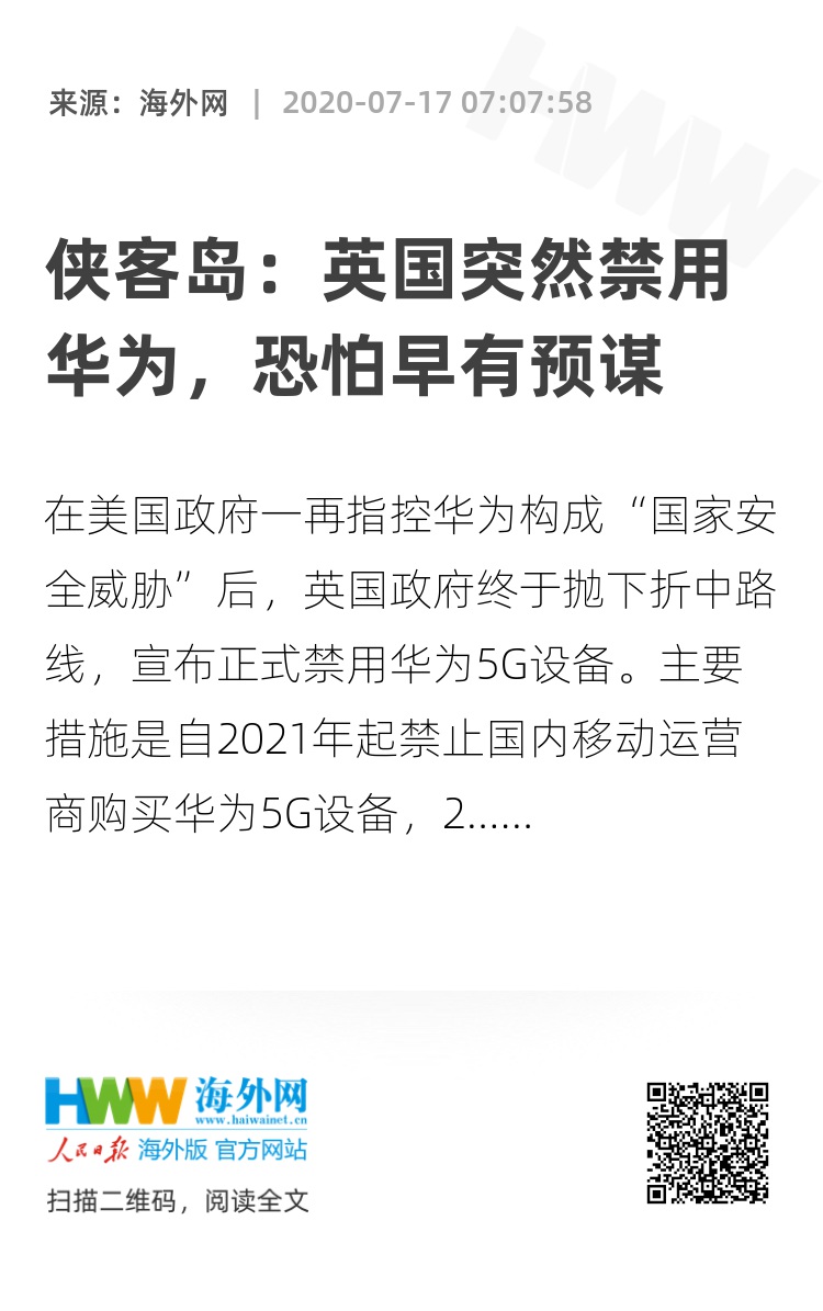 路透社6月20日的报道颇有戏剧性,其称英国政府写信给本国运营商,劝他们囤积足够的华为设备。
