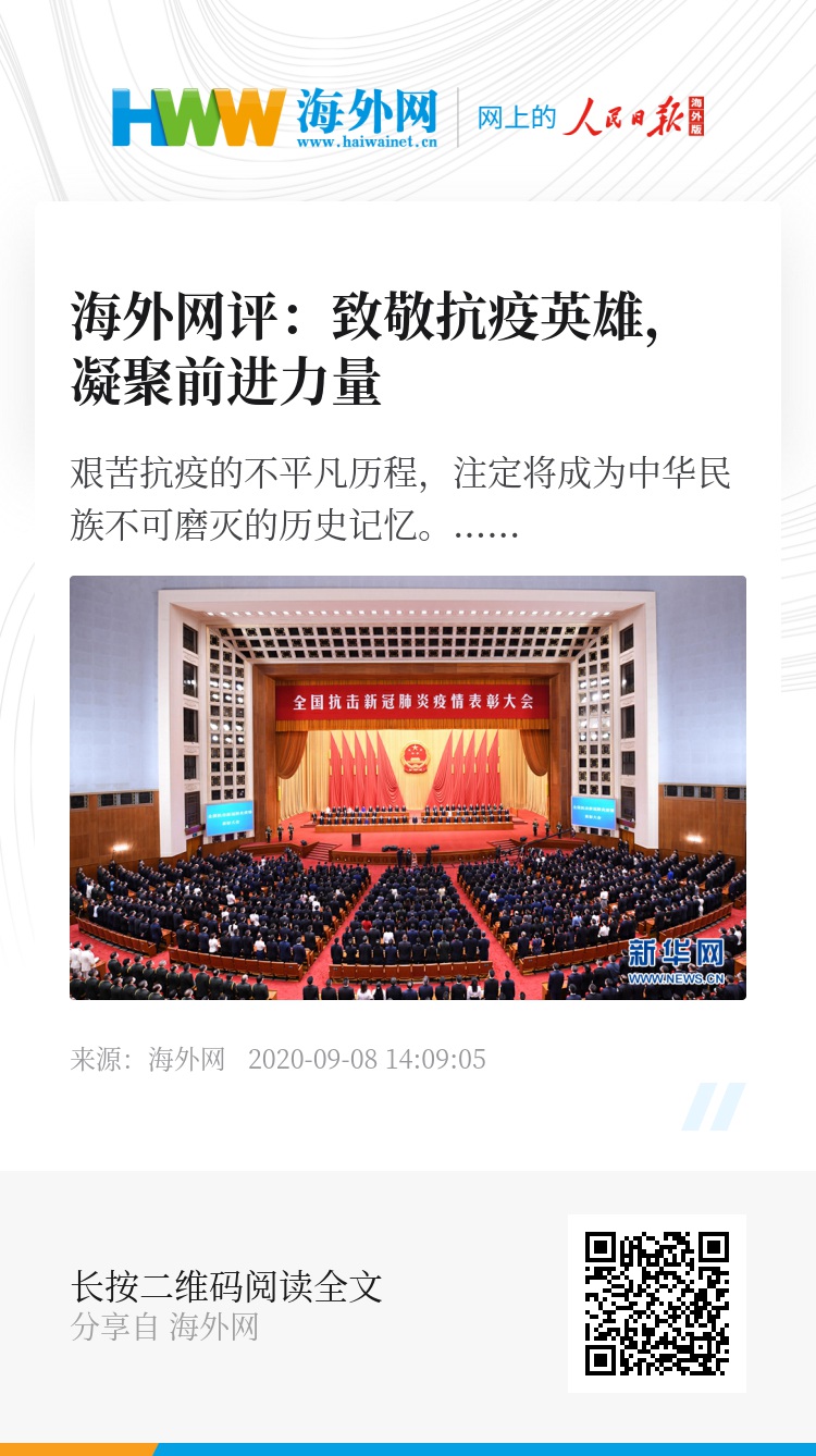 艰苦抗疫的不平凡历程,注定将成为中华民族不可磨灭的历史记忆。铭记功勋模范人物卓越功绩,弘扬伟大抗疫精神,激荡砥砺前行磅礴力量,中国定能在危机中育新机、于变局中开新局。从5000多年文明发展的苦难辉煌中走来的中国人民和中华民族,必将在新时代的伟大征程上一路向前,任何人任何势力都不能阻挡中国人民实现更加美好生活的前进步伐。(孟庆川)