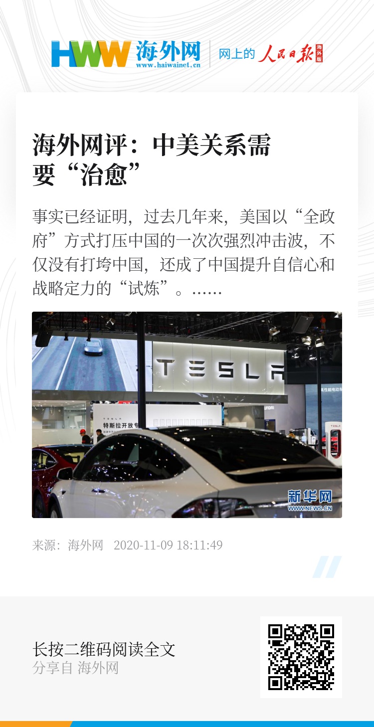 只要看清楚中美关系发展的大势,就不难得出一个结论:“治愈”中美关系,是符合两国人民根本利益、世界和平发展历史潮流的正确抉择。(海外网评论员)