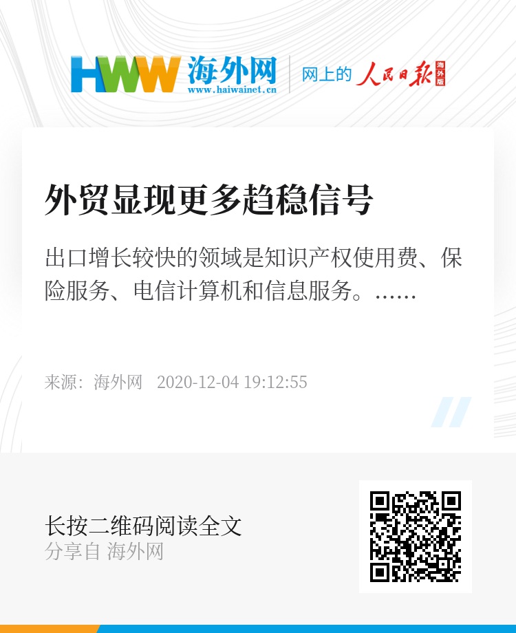 12月3日,商务部举行例行新闻发布会,公布外贸领域的一些最新数据。这些数据传递出外贸趋稳的积极信号。
