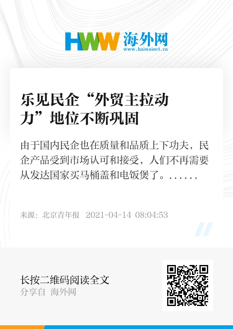 近年来,我国民营经济呈现两个积极变化。一是民营企业也在加大结构调整与转型力度,加快企业技术和产品升级,以适应高质量发展要求,适应广大居民对美好生活的追求。如前些年受到广泛关注的马桶盖、电饭煲等产品,由于国内民企也在质量和品质上下功夫,民企产品受到市场认可和接受,人们不再需要从发达国家买马桶盖和电饭煲了。