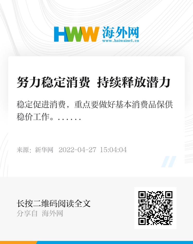 国务院办公厅近日印发《关于进一步释放消费潜力促进消费持续恢复的意见》,围绕当前消费领域重点热点问题,提出5方面20条政策举措。落实好这些政策举措,有助于稳定当前消费、稳定宏观经济大盘、持续释放超大规模市场潜力。
