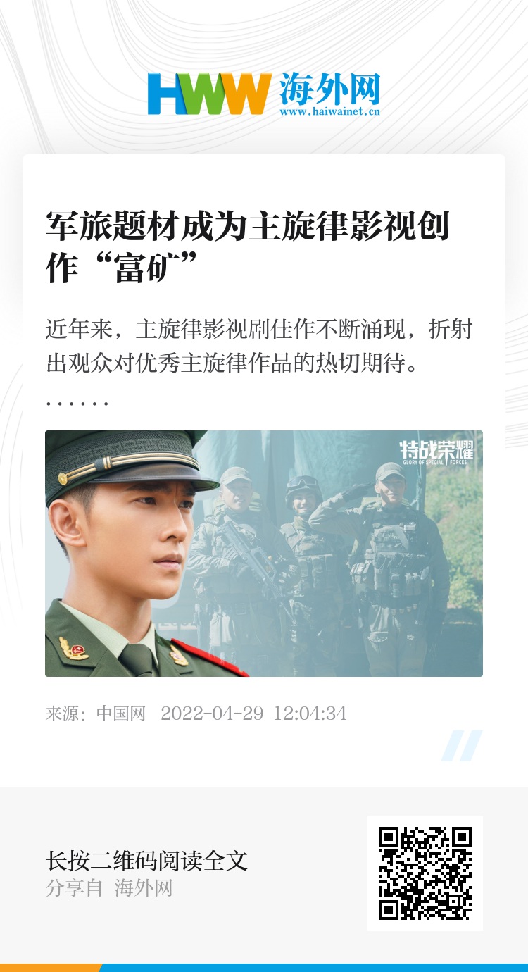 近年来,主旋律影视剧佳作不断涌现,折射出观众对优秀主旋律作品的热切期待。《特战荣耀》剧情紧凑氛围拉满,以军人的气质演绎军人,承载着价值引领与精神传递的特质,受到了全年龄段观众的喜爱。这也再一次证明,军旅题材的主旋律影视创作是一座充盈的富矿,正在展现出强大的市场号召力。