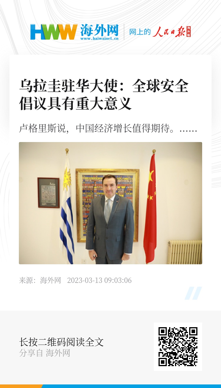 乌拉圭驻华大使费尔南多·卢格里斯日前接受海外网采访时表示,两会是中国政治生活中的一件大事。
