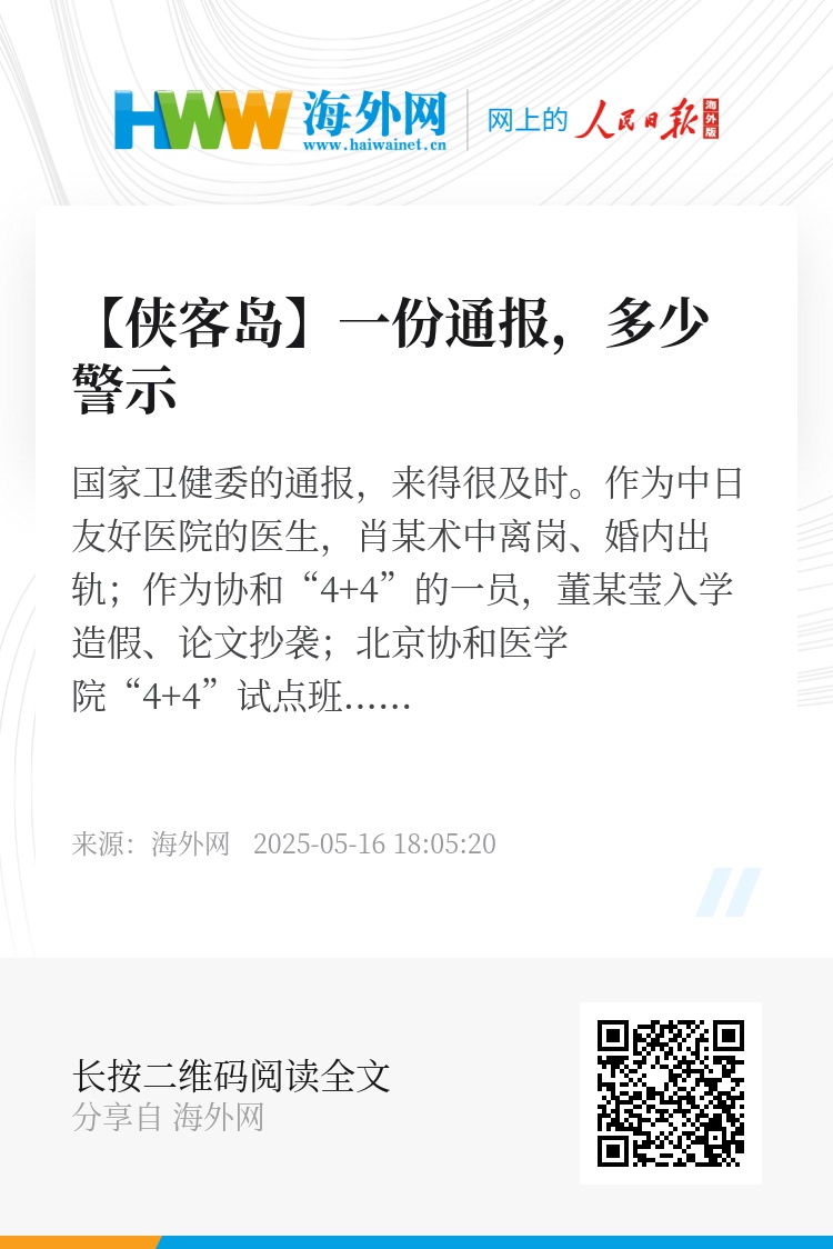 其三,联手出拳。卫健委不是单打独斗,有教育部一同调查,不仅查医德医风,也查办学问题。北京协和医学院深入整改,国家卫生健康委会同教育部对北京协和医学院“4+4”试点进行全面评估,督促改革完善。
