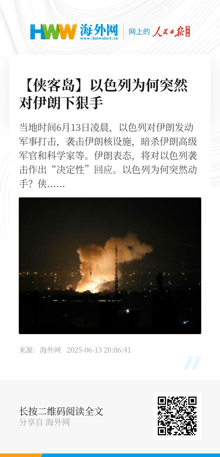 当地时间6月13日凌晨,以色列对伊朗发动军事打击,袭击伊朗核设施,暗杀伊朗高级军官和科学家等。伊朗表态,将对以色列袭击作出“决定性”回应。