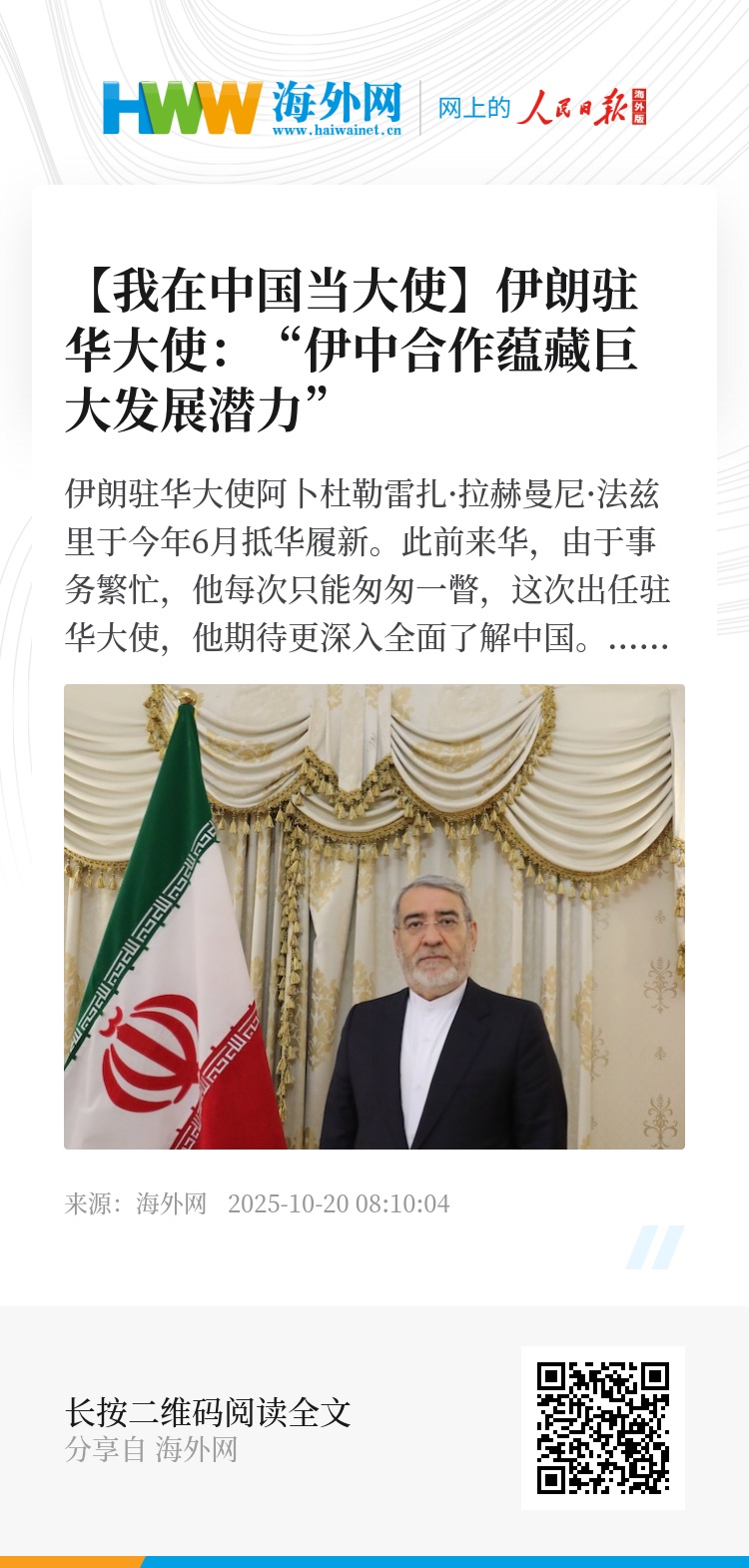 原标题:“伊中合作蕴藏巨大发展潜力”(我在中国当大使(119))——访伊朗驻华大使阿卜杜勒雷扎·拉赫曼尼·法兹里