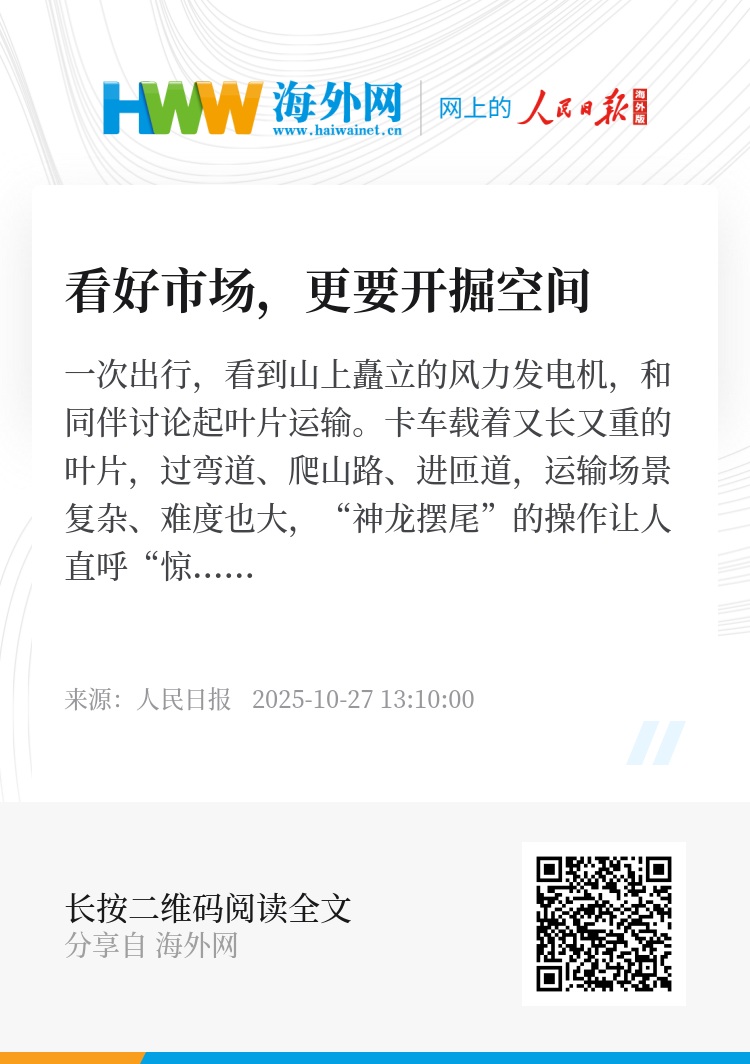 不由得想到在叶片生产企业的采访。当看到正在制作的过百米叶片,有人提问:造得越大越多,总有饱和的一天,后面怎么发展呢?相关负责人并不担忧,因为他们早已布局“后产业链”,风力发电机运维、叶片回收利用等市场不小。从实践中看,不断延展产业链、丰富业务场景,企业的努力与开拓,在一定程度上反驳了“市场有限”“发展乏力”的论调。
