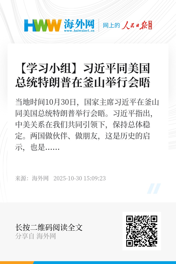 当地时间10月30日,国家主席习近平在釜山同美国总统特朗普举行会晤。