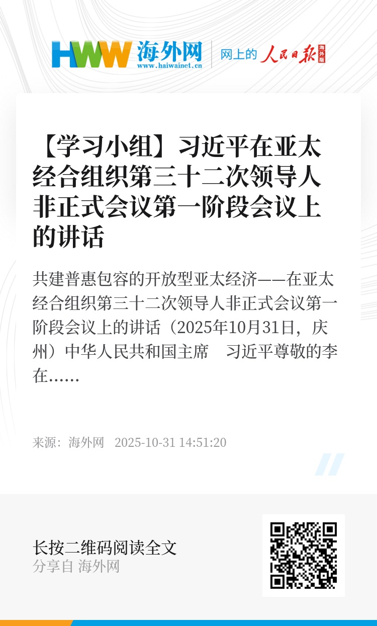 不久前,中共二十届四中全会通过了关于制定“十五五”规划的建议。中方将以此为契机,进一步全面深化改革,坚定不移扩大高水平对外开放,不断以中国式现代化新成就为亚太和世界提供新机遇。