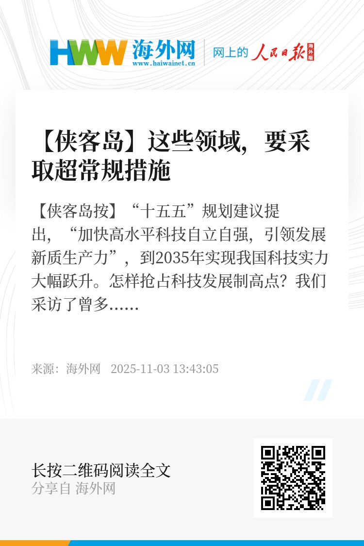 2、侠客岛:“十五五”规划建议提出“加快高水平科技自立自强,引领发展新质生产力”。如何理解?