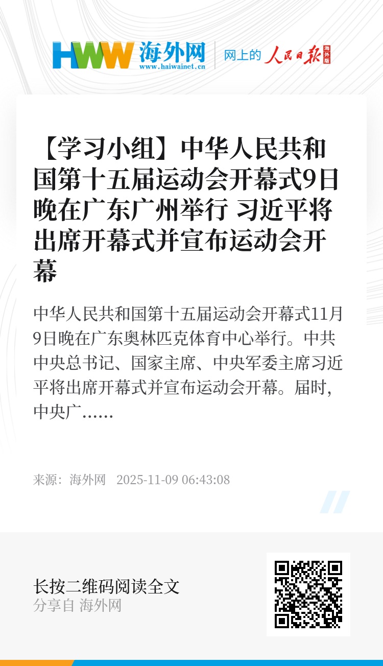原标题/中华人民共和国第十五届运动会开幕式9日晚在广东广州举行 习近平将出席开幕式并宣布运动会开幕