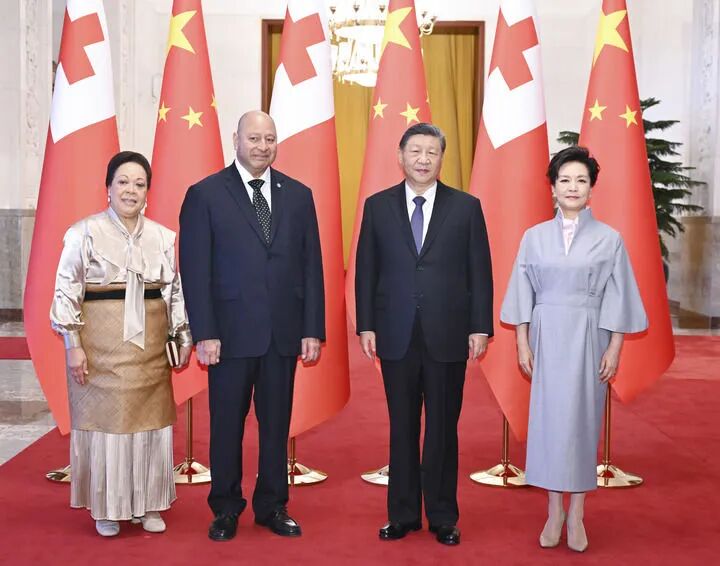 当天中午,习近平和彭丽媛为图普六世夫妇举行欢迎宴会。