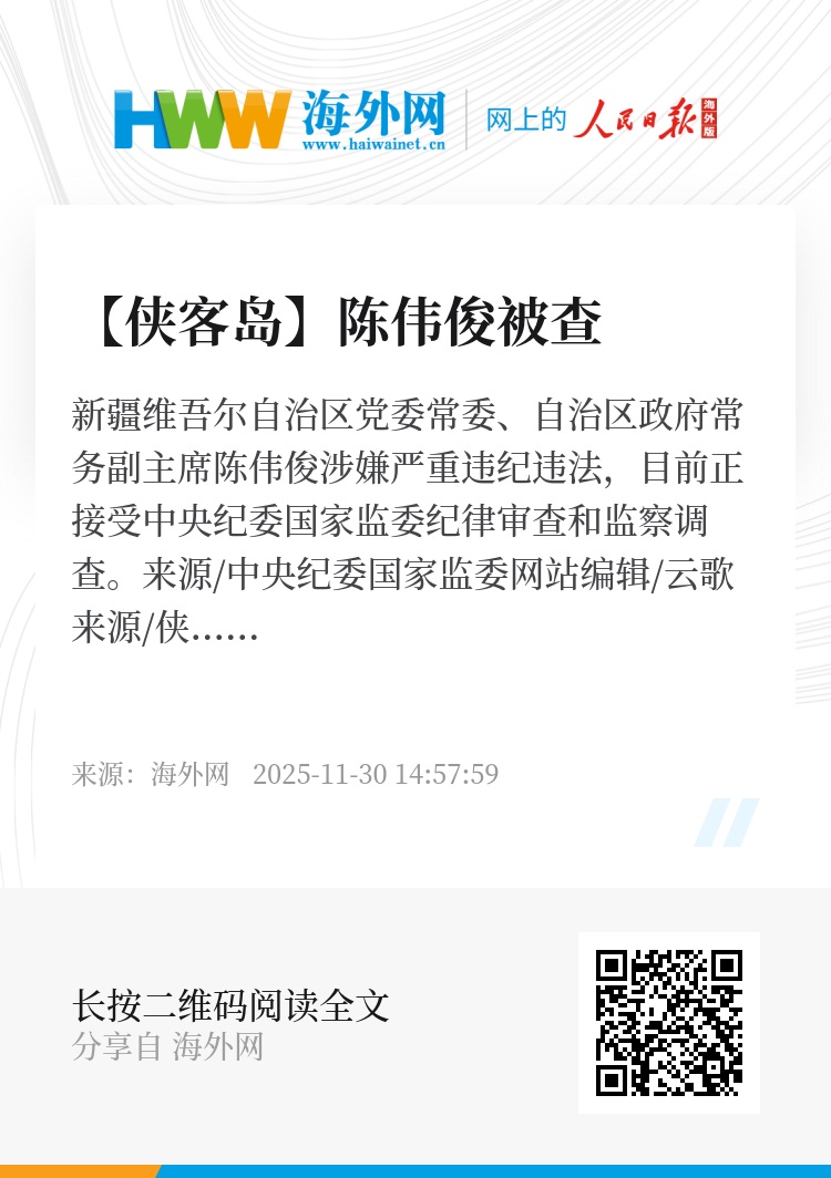 新疆维吾尔自治区党委常委、自治区政府常务副主席陈伟俊涉嫌严重违纪违法,目前正接受中央纪委国家监委纪律审查和监察调查。