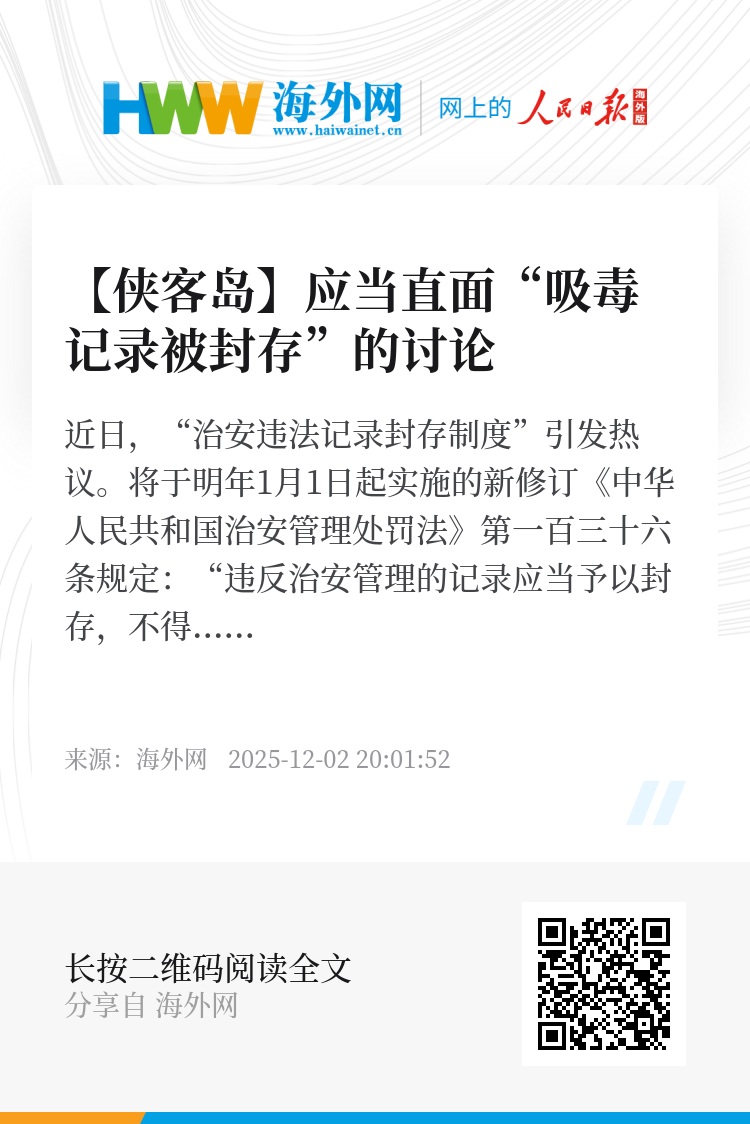 无论是我们的历史逻辑还是工作现实,都不可能对涉毒行为有“开恩”“放过”的意图,不可能纵容吸毒者或对其网开一面。《禁毒法》《戒毒条例》等专门法律法规,则对惩治毒品违法犯罪行为、戒毒措施等有严明规定,其法律效力并不会因“封存”削弱。