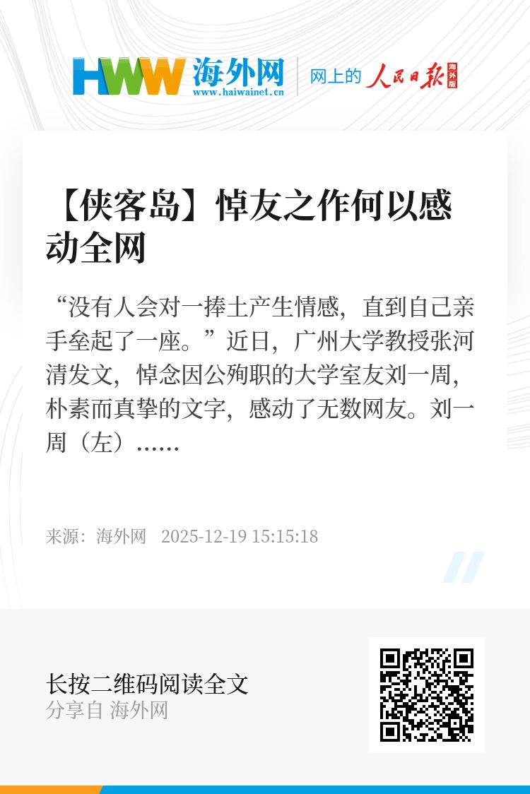 近日,广州大学教授张河清发文,悼念因公殉职的大学室友刘一周,朴素而真挚的文字,感动了无数网友。