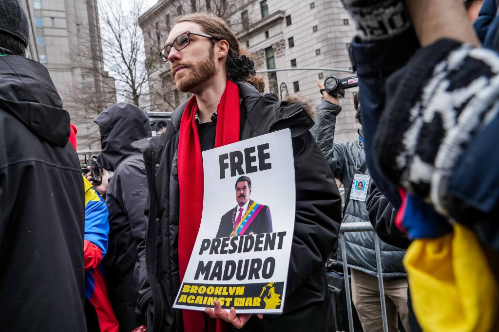 1月5日,抗议者聚集在美国纽约南区联邦地区法院外要求释放马杜罗。(图源:新华社)