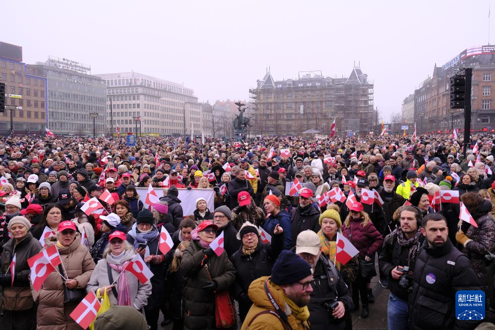 1月17日,人们在丹麦首都哥本哈根的市政厅广场参加游行示威。图源:新华社