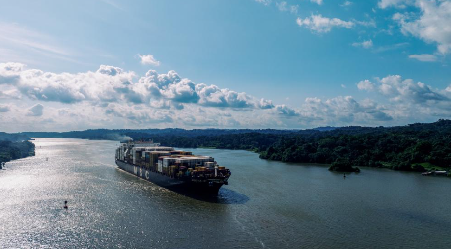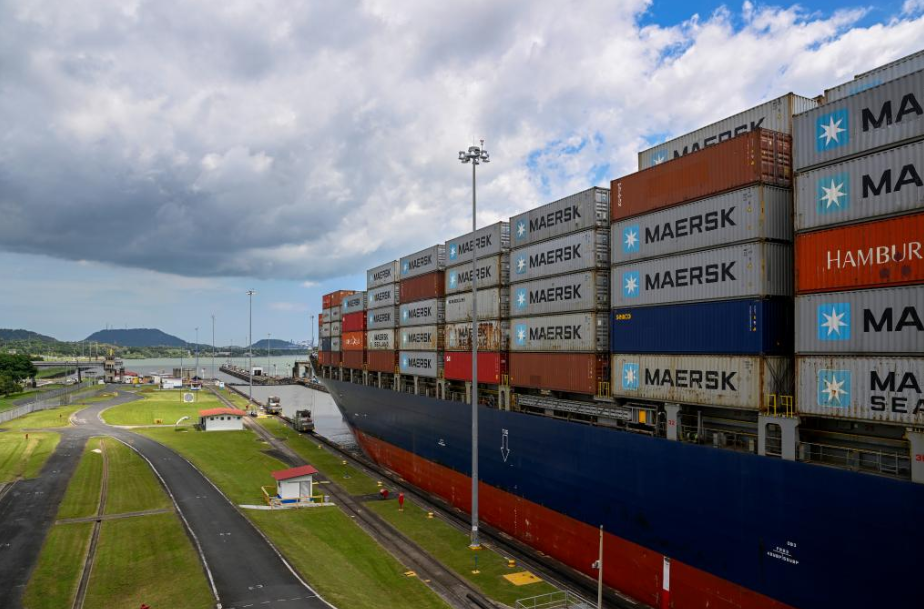 在巴拿马首都巴拿马城附近,一艘货轮在巴拿马运河上航行。图源:新华社