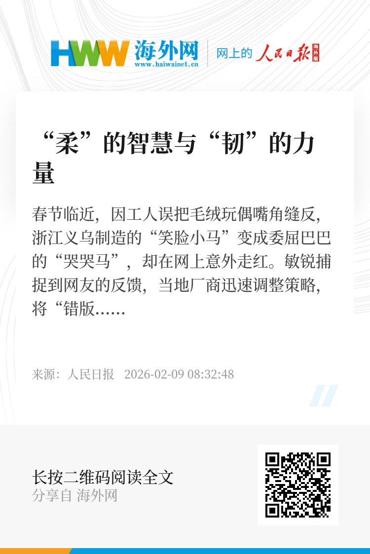 小小“哭哭马”,折射供给端对需求端的快速响应,映照义乌成熟的产业链生态。这种因势而变、柔韧合一的能力,正是中国经济竞争力的基底,也给推动高质量发展带来启示。
