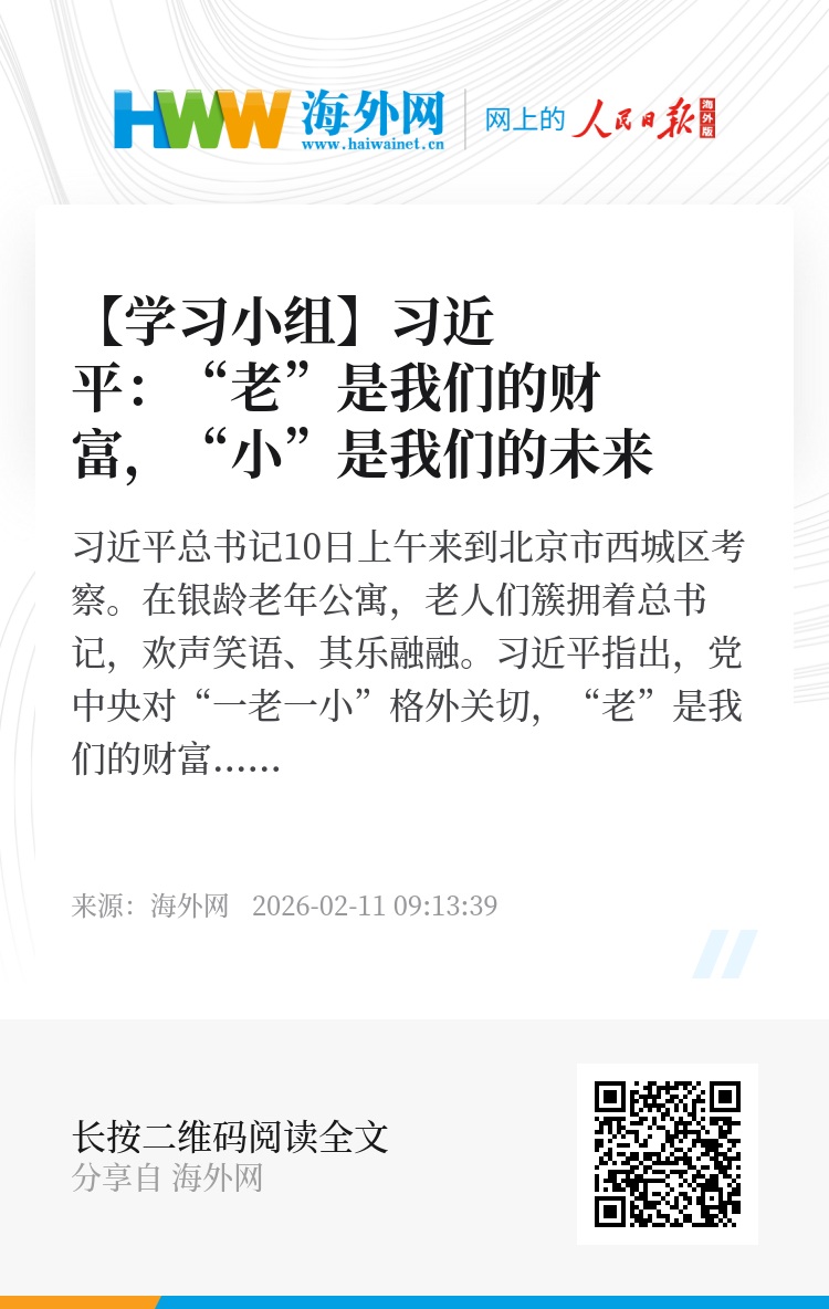 原标题/习近平:“老”是我们的财富,“小”是我们的未来
