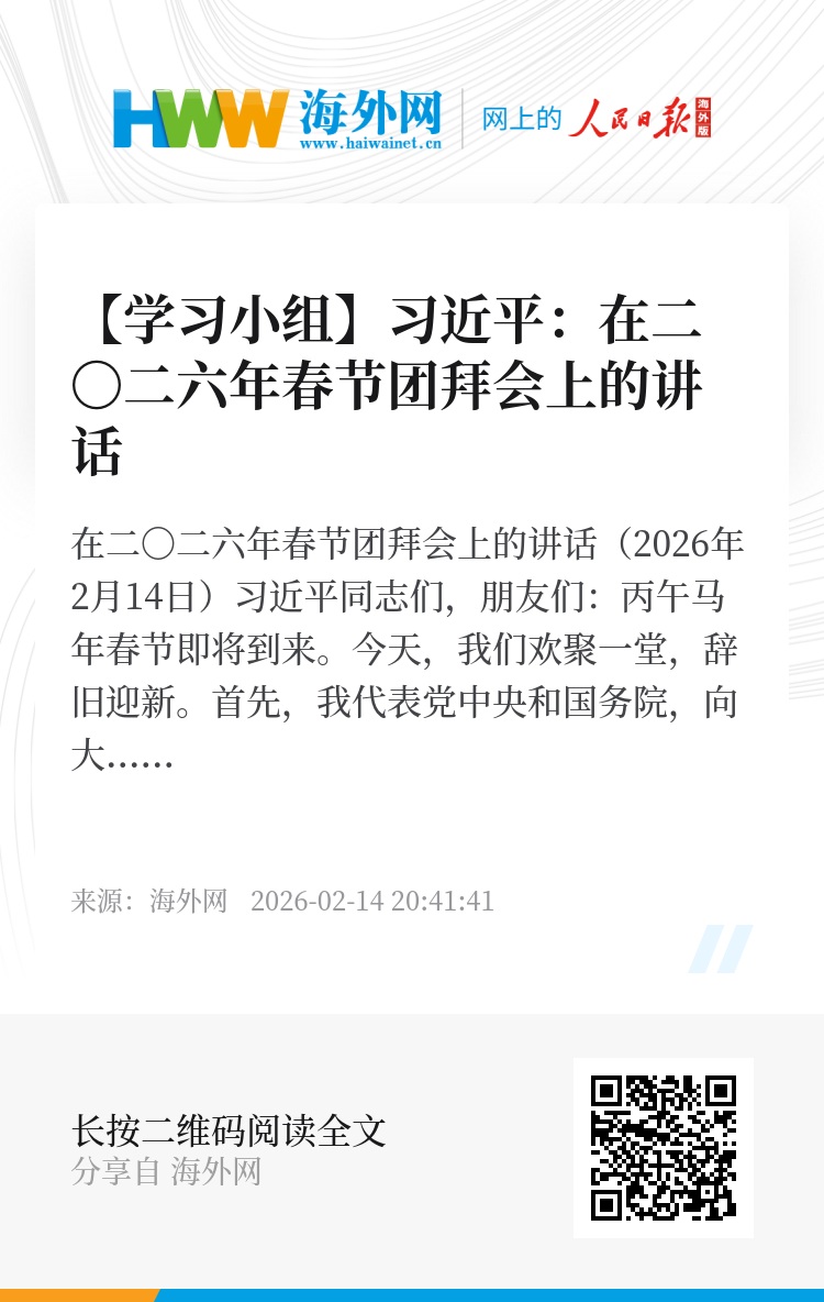 原标题/习近平:在二〇二六年春节团拜会上的讲话