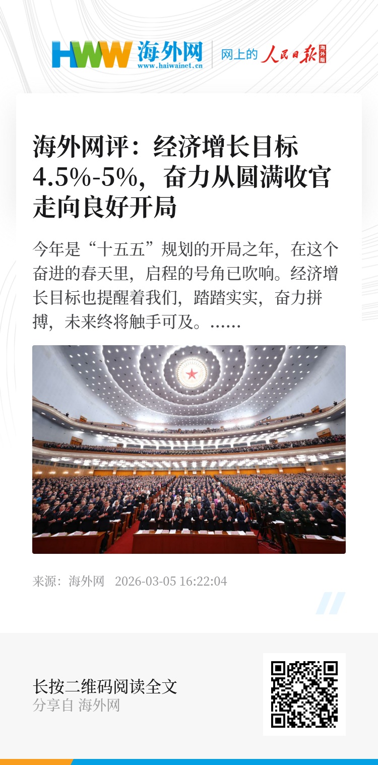 今年是“十五五”规划的开局之年,在这个奋进的春天里,启程的号角已吹响。经济增长目标也提醒着我们,踏踏实实,奋力拼搏,未来终将触手可及。(海外网评论员)