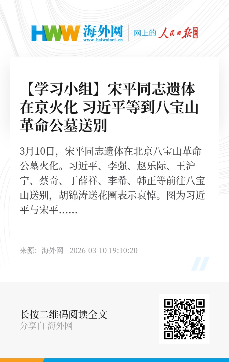 宋平同志因病于2026年3月4日15时36分在北京逝世,享年109岁。