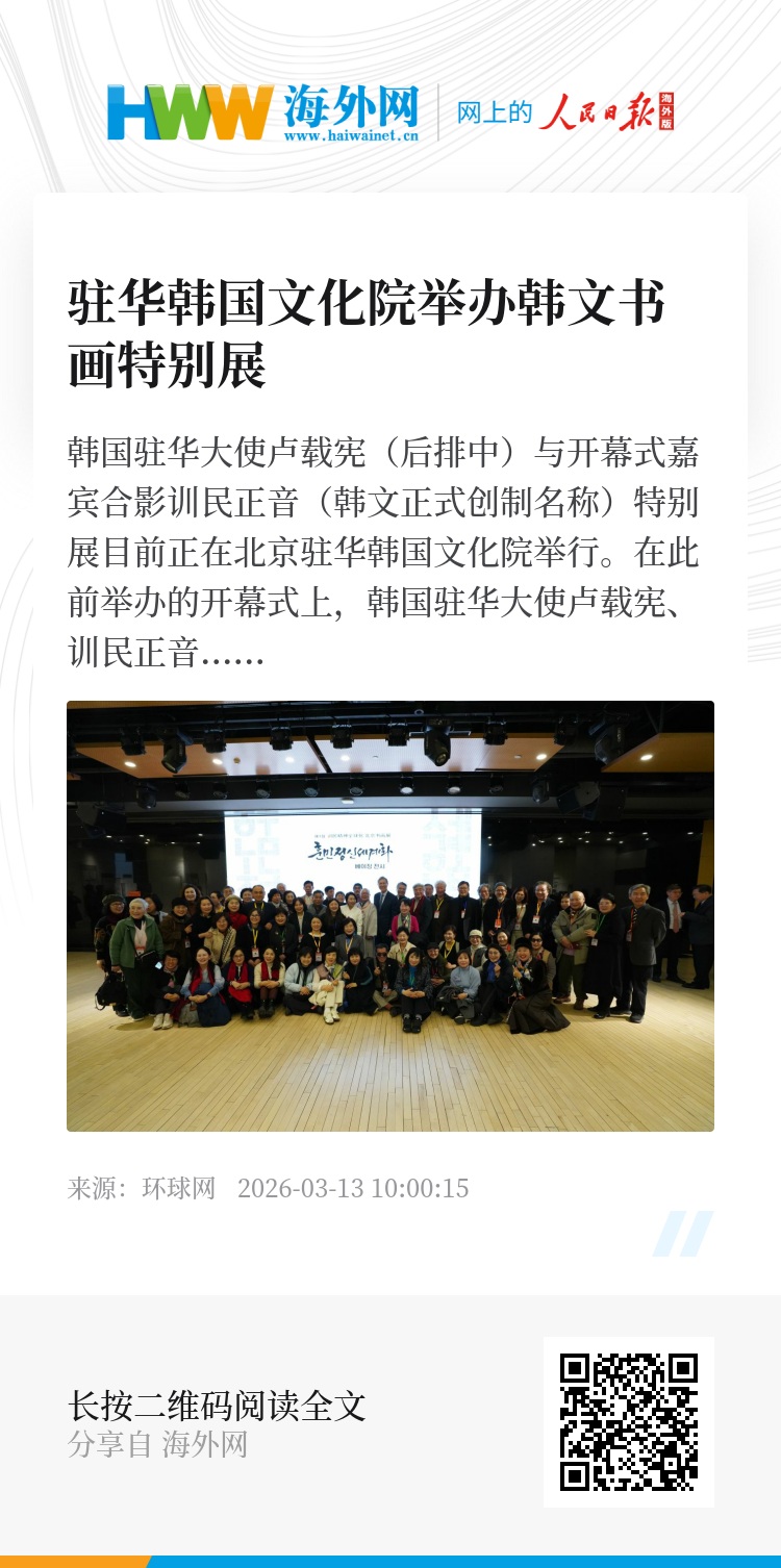 此次书画展于3月3日至3月25日在驻华韩国文化院举行,旨在弘扬世宗大王李裪的训民正音创制精神,以书法和绘画的艺术语言向中国观众介绍韩文的美学与价值观,以此增进中韩两国的友谊。