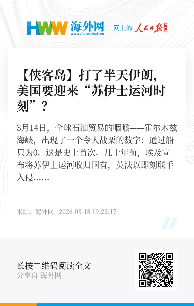 几十年后,面对眼下霍尔木兹海峡的死寂,局势又是怎样的走向?至少,已有美国人抛出了这样的结论:美国将迎来自己的“苏伊士运河时刻”。