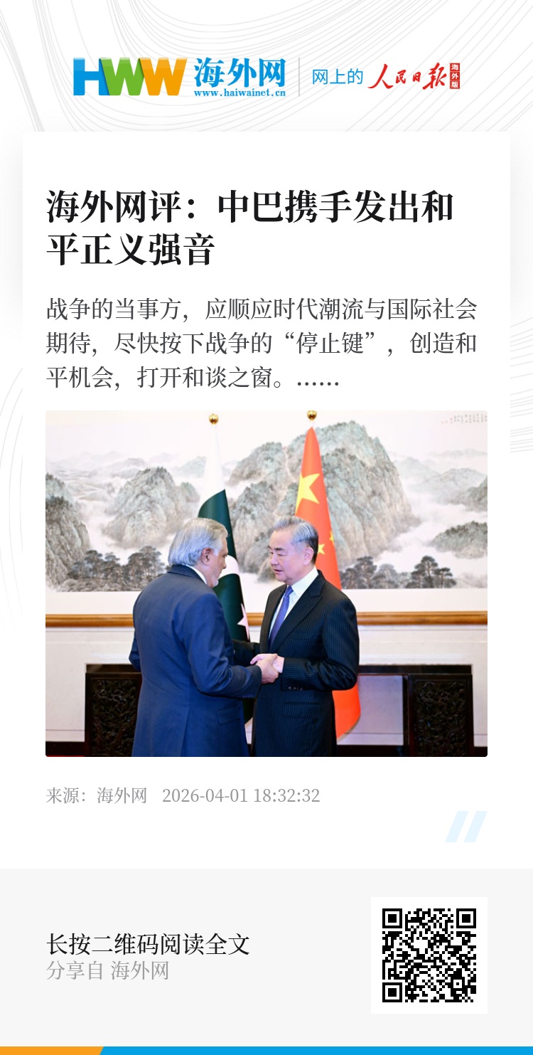 “这是迄今最系统性的方案之一,为局势缓和指明了路径。”3月31日,中巴外长在北京发表《中国和巴基斯坦关于恢复海湾和中东地区和平稳定的五点倡议》,《巴勒斯坦纪事报》对此给予积极评价。在美以伊战事激烈进行、地区局势扑朔迷离的关键时刻,中巴为推动和平进程作出的这一重大努力,为动荡的世界注入稳定性,受到国际社会的广泛赞誉。