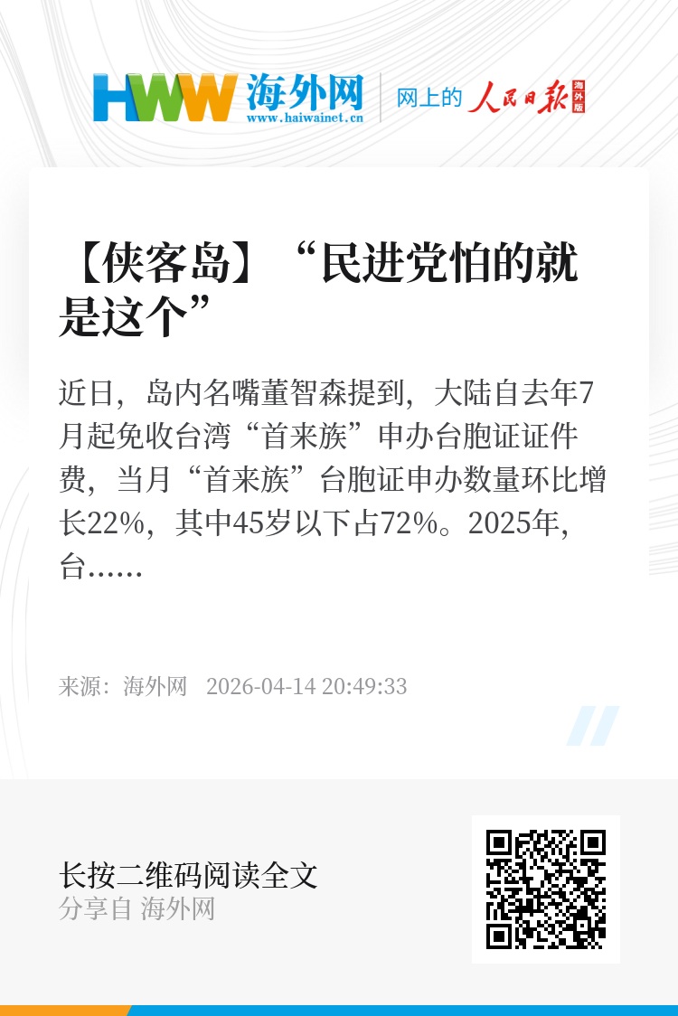 近日,岛内名嘴董智森提到,大陆自去年7月起免收台湾“首来族”申办台胞证证件费,当月“首来族”台胞证申办数量环比增长22%,其中45岁以下占72%。2025年,台湾居民近490万人次到大陆,现在还在增长。