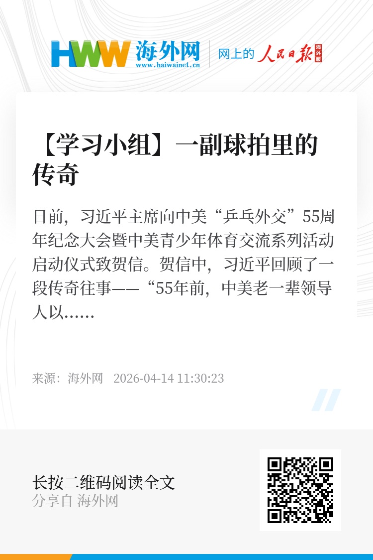 “55年前,中美老一辈领导人以卓越的政治智慧和战略远见,重新开启两国人民友好往来的大门,成就了‘小球转动大球’的历史佳话。”