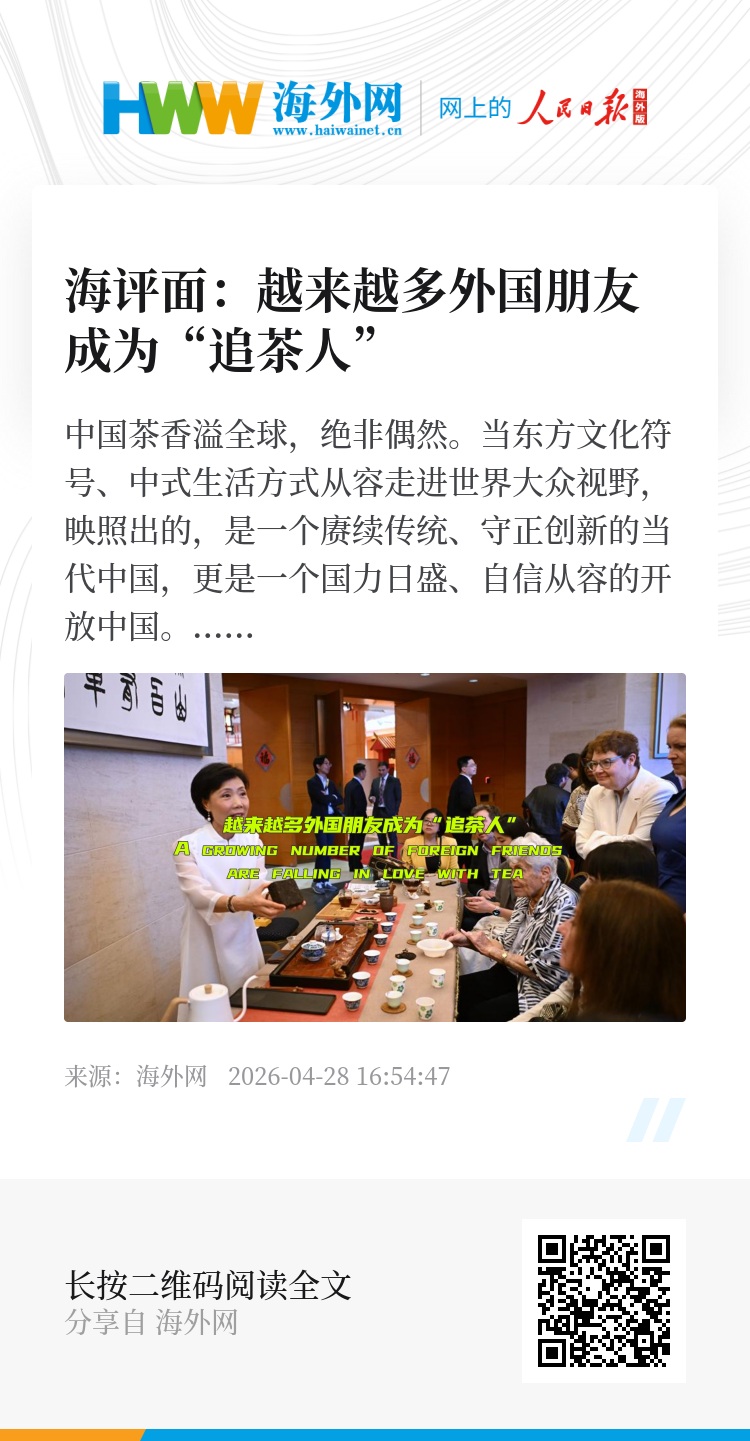 中国茶香溢全球,绝非偶然。当东方文化符号、中式生活方式从容走进世界大众视野,映照出的,是一个赓续传统、守正创新的当代中国,更是一个国力日盛、自信从容的开放中国。